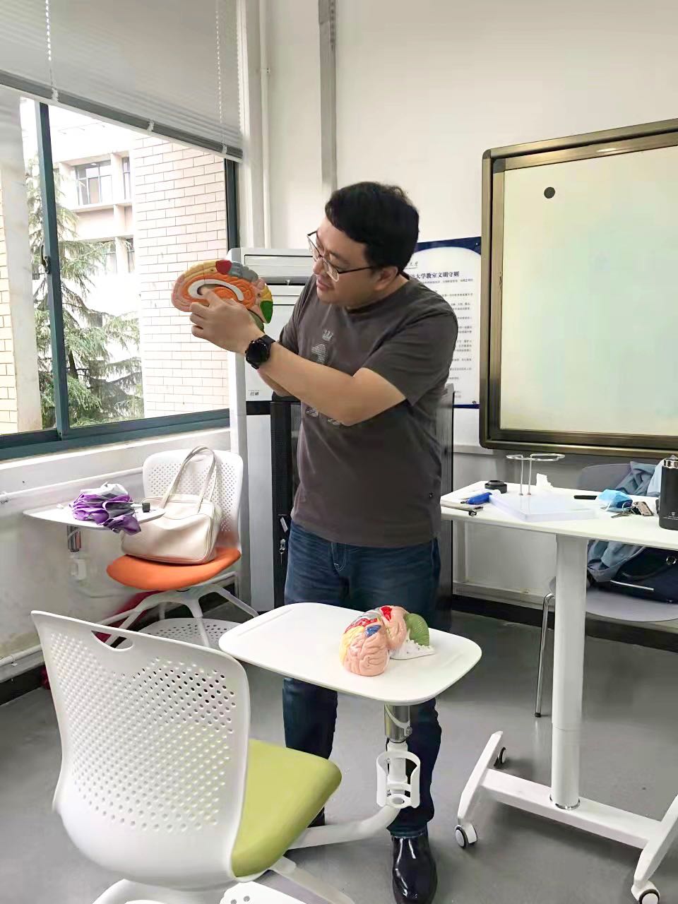 9月28 日上午,张文嘉、董洁旁听了燕浩教授为我校英21级博士研究生开设的 “语言认知神经科学导论”课程,燕浩老师亲身示范、精心准备,以精彩的课堂内容引导青年教师如何上好一门课,指导青年教师掌握正确的教学方法,熟悉并把握教学环节和教学规范。提高了青年教师的教学技能,从而更好地积累课堂经验,站稳讲台。