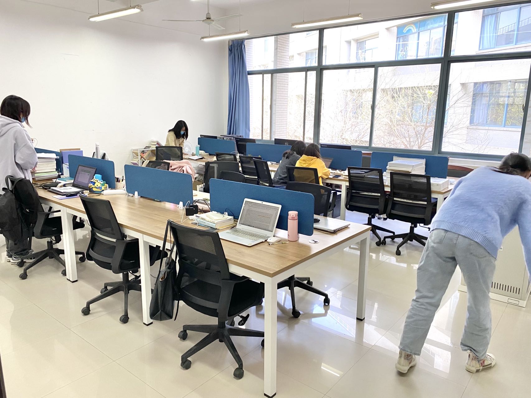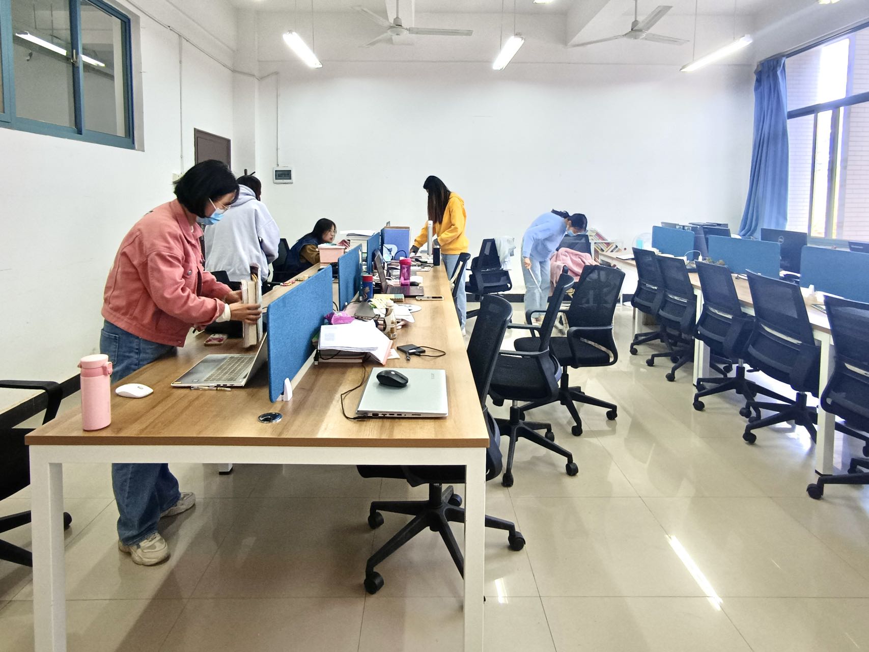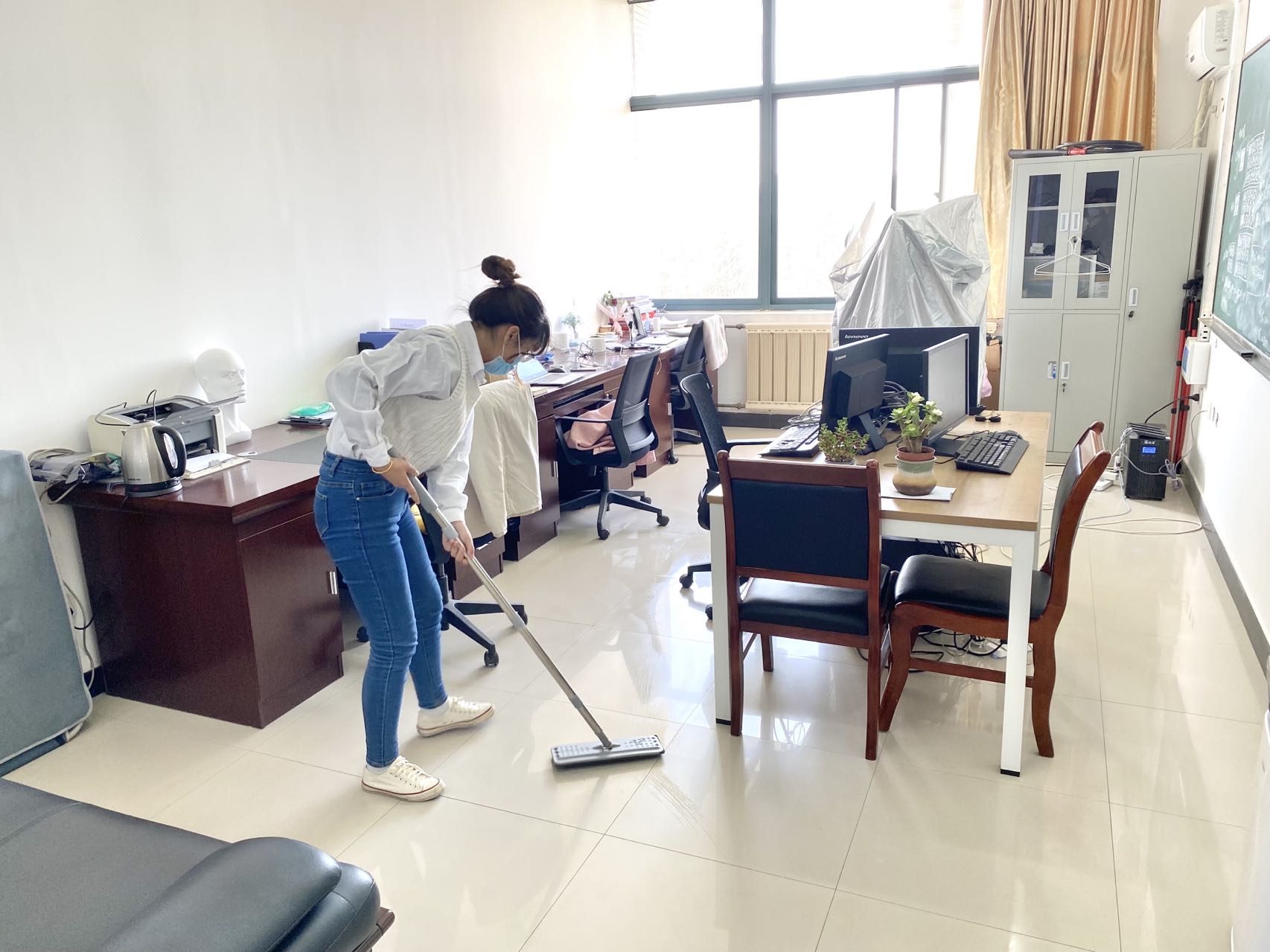 活动中,大家积极响应、分工行动、密切配合,对办公室及周边区域进行了全面清扫、消毒;擦拭窗台书柜,个人物品摆放整齐;无烟环境,继续做到控烟防火宣传;每间办公室均备有一次性口罩及消毒凝胶。