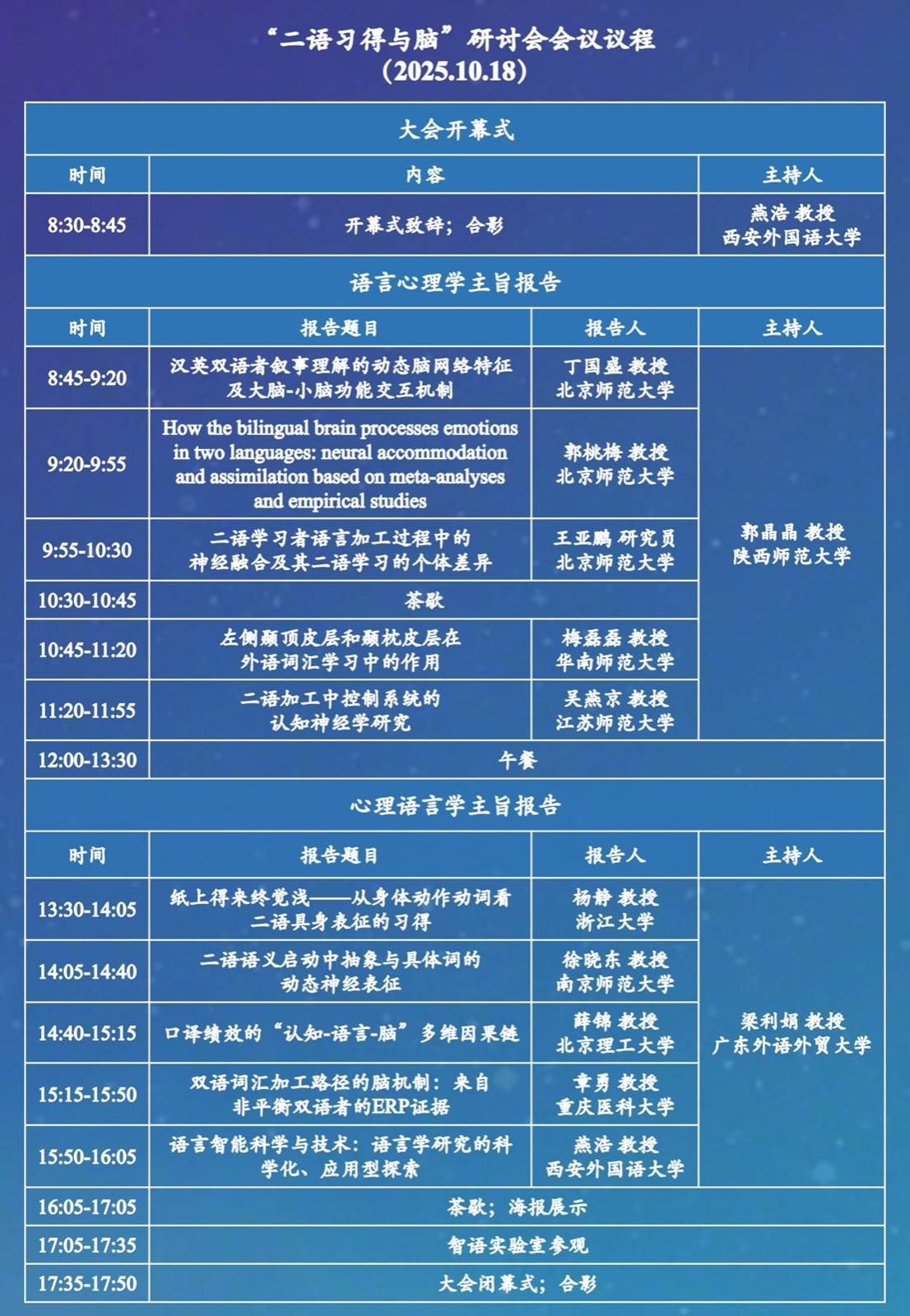 参观及技术演示等环节,为与会者提供学术探讨与合作交流的平台。我们诚挚邀请国内外高校、科研院所、医疗机构及产业界的专家学者、研究人员、教师、博硕士研究生及优秀本科生莅临西安外国语大学长安校区,共同探讨二语习得与脑科学的前沿进展,推动跨学科创新与产学研融合。