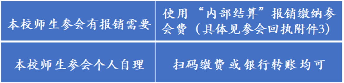 方式三:西外内部结转(仅适用于对此处会议费用有报销需求的西外本校师生)。具体缴纳方式:填写会议回执,并填写回执中的附件3进行内部结算完成报销手续。