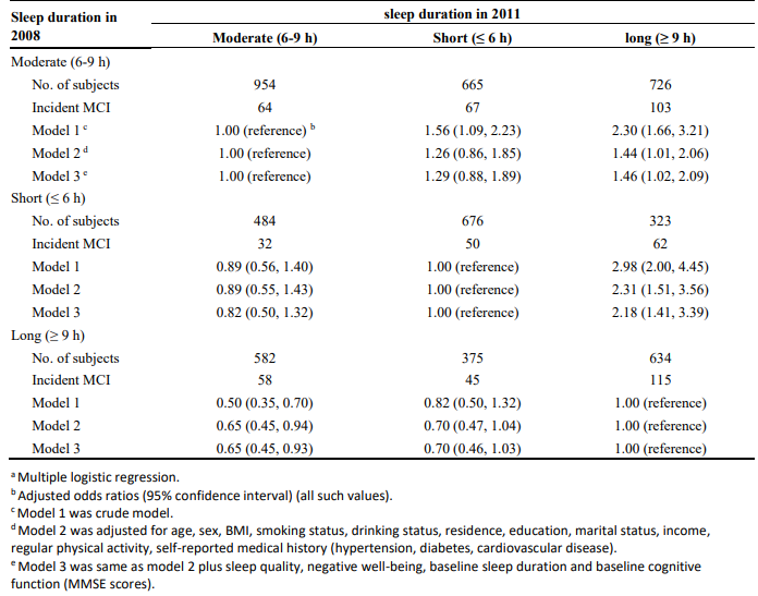 原文:Changes in sleep duration and 3-year risk of mild cognitive impairment in Chinese older adults