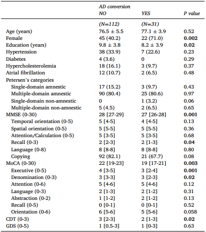 表1. MCI患者的临床、人口学、功能和认知特征