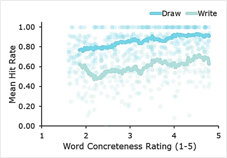 图2. 不同的具体性评级单词的动态平均命中率