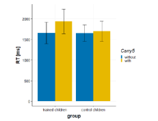 ① 反应时分析显示五进制主效应显著(p < 0.001)。五进制效应指的是当加法任务不涉及五进制算法时,孩子能更快地给出答案。一项简单的效应分析显示,只有受过训练的儿童才表现出显著的五进制效应。