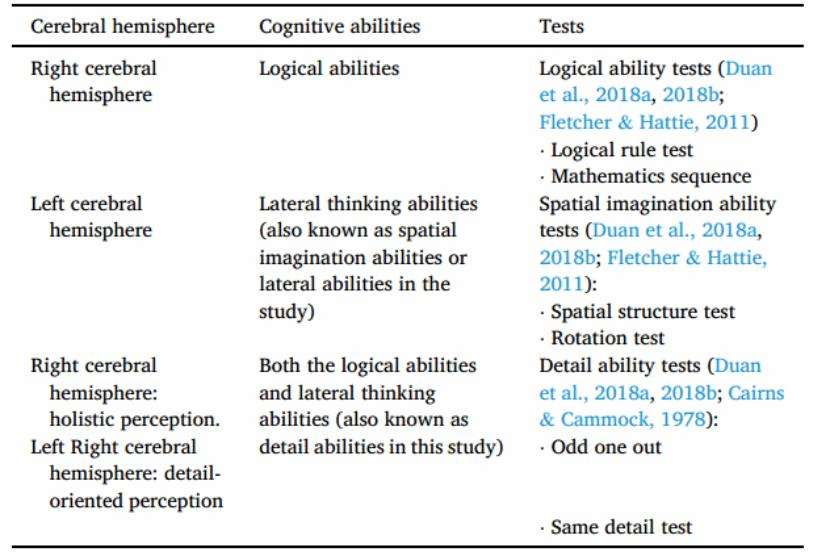 本研究表明在沉浸式VR环境中,色度和亮度可以影响被试的逻辑和横向思维能力以及细节关注能力;并且这些认知差异也受性别影响。研究结果对色彩心理学和虚拟现实设计领域有重要贡献,增强了色彩属性(色度和亮度)对沉浸式VR环境中人们认知表现影响的理解。