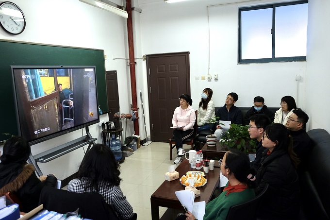 组织全体教职工在JC304A集体观看了《榜样》节选视频《张富清:“党指到哪里就坚决打到哪里”》和《嫦娥四号工程党组织》。